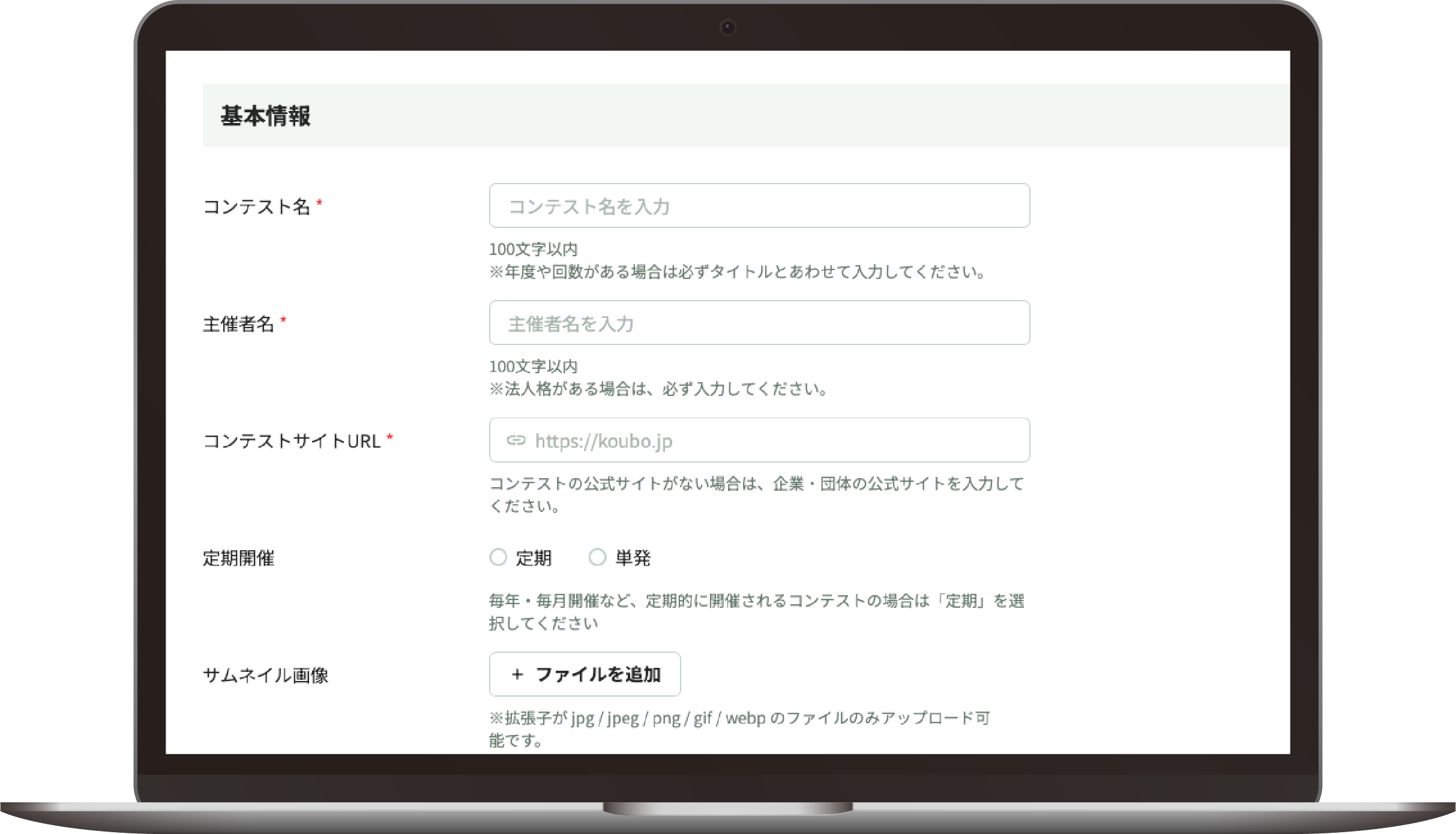 告知・応募・基本的な作品管理まで「標準装備」を、まずは無料で